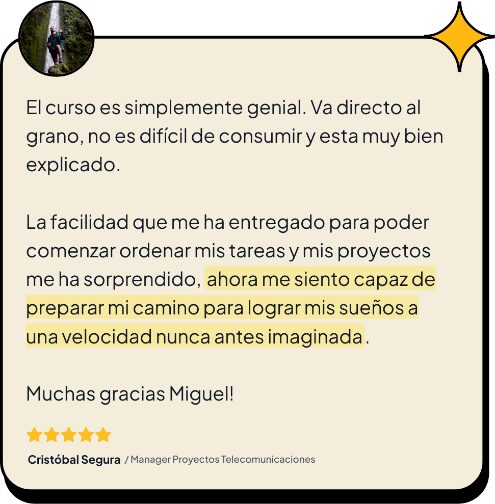 P.D. No sólo a Fabricio, he ayudado a +1000 alumnos a ser más productivos usando para ello un sistema de productividad simple (con una valoración media de 4,98/5).