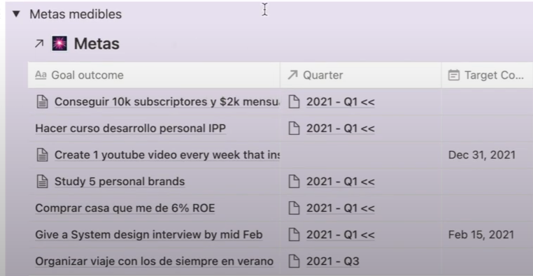 Como puedes ver, tenía una lista bastante extensa y, para colmo, las primeras 6 metas estaban planeadas para el primer cuatrimestre del año.